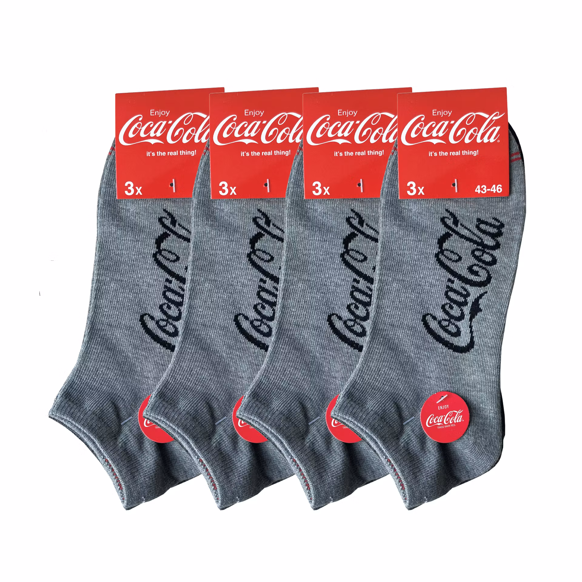 Coca-Cola, 12-par Grå/ Svarta ankelstrumpor 39-42, 43-46
